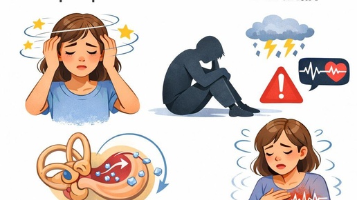 ? Ощущения могут быть очень разными. Люди описывают их так: Типичные описания: 🔹 «Пол уходит из-под ног» 🔹 «Качает как на корабле» 🔹 «Голова ватная, пустая, не моя» 🔹 «Всё плывёт перед глазами» 🔹 «Иду как пьяная, шатает» 🔹 «Земля уходит, вот-вот упаду» 🔹 «Предметы то приближаются, то отдаляются» 🔹 «В глазах темнеет, звенит в ушах» Подробнее в карточках к посту 🧠 Почему головокружение становится частым спутником тревоги? Причина 1: Гипервентиляция Самая частая причина головокружения при тревоге...