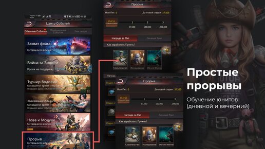 Идем в Телеграм - больше актуальной информации по текущим событиям! Дневной прорыв в Puzzle Survival на обучение юнитов и вечерний на стройку, исследование, обучение - самые простейшие в закрытии, какие только можно придумать. Вечерний прорыв можно закрыть вообще не тратя ускорения, дневной - потратив буквально несколько минут ускорений. Чтобы не тратить ускорения, необходимо раз в день запускать обучение всех юнитов ровно на 24 часа. Обучение всегда запускается в одно и то же время, сразу после того как появился последний прорыв дня...