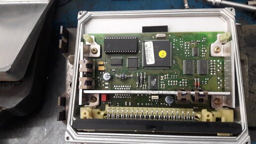 Привет. Сегодня хотел поговорить о программировании контроллера Бош 1.5.4, которые устанавливались на автомобили семейства ВАЗ, примерно, с 2000 г до 2005 г. На самом деле эти блоки, как видим старые, но может кому-то информация будет полезна. Пожалуй единственный из блоков, которые ставились на ВАЗы, где необходимо выпаивать микросхему , что бы перепрограммировать блок. Снимаем контроллер с авто, снимаем металлическую крышку. Хочу отметить, на первых бошах с завода припаяна кроватка , а в нее вставлена микромхема...