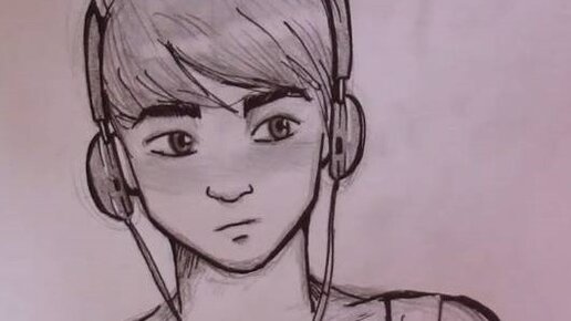 В примере ниже мы рассмотрим более подробно, как нарисовать лицо парня. Начнем, как обычно, с разметки. В предлагаемом примере основа выглядит так: Затем придадим более четкие черты овалу лица, уточним подбородок и шею. В соответствии с заданными эскизом пропорциями нарисуем лицо. Если планируются индивидуальные детали, например, наушники, самое время изобразить их. Для завершения образа проработаем волосы...