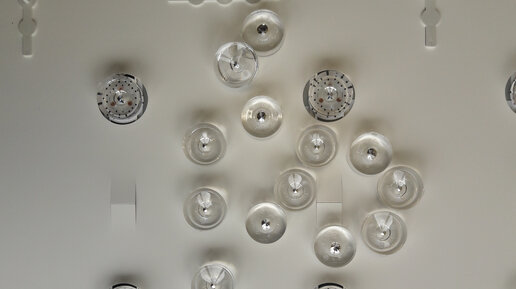 Всем здравствуйте! Сегодня мы ремонтировали телевизор LG 42LB652V-ZA. С заявленной неисправностью - пятна на изображении. При вскрытии матрицы было обнаружено вот такое дело. Немного покачав остальные линзы тоже отвалились :) При проверке самой подсветки,все светодиоды оказались исправными , посмотрел под лупой на покрытие светодиода деградации особо не обнаружено. Все светики в удивительно хорошем состоянии. Но вот линзы отвалились. Для начала я установил все линзы на место прижав на посадочном месте, проверил равномерность свечения - всё в норме...
