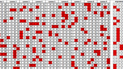 Продолжаю цикл постов, посвященных российским лотереям. Сегодня проведем анализ достаточно популярной лотереи "5 из 36" и определим правила, которые помогут нам заполнить лотерейный билет таким образом, чтобы он не проиграл еще до начала самого тиража! Суть метода группировки чисел (использовали ранее для анализа других лотерей) состоит в объединении в одну группу чисел с одинаковой суммой цифр, которые их составляют, например, сумму 1 дают числа 1, 10, 19, 28 и т. д. Итак, сама таблица (2 части): 1...