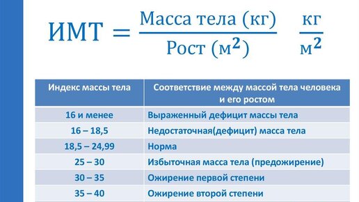 Проблема ожирения становится все более актуальной не только для Запада, но и для нашей страны. Оно требует пристального внимания, поскольку опасно различными осложнениями, включая диабет, сердечно-сосудистые заболевания и некоторые виды рака. Поэтому необходимо принимать меры для профилактики и лечения этого заболевания, причем задуматься об этом стоит даже тем, кто выглядит стройным и пропорционально сложенным: они также могут иметь избыточный вес. Для оценки состояния организма существует формула индекса массы тела (ИМТ), при которой вес в килограммах делится на квадрат роста в метрах...