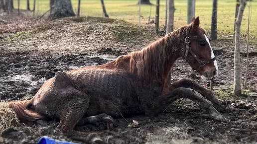 Слабый брошенный конь лежал в грязи и почти не дышал, но волонтеры отказались сдаваться
