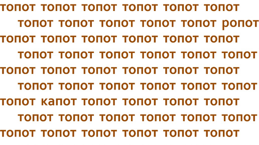 Тест на внимательность. Поищите 5 слов отличающихся от слова "топот"