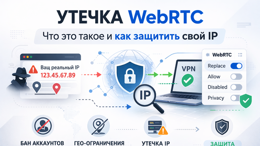 Если вы используете прокси, VPN или управляете несколькими аккаунтами, вы можете считать, что ваш реальный IP скрыт. Во многих случаях это не совсем так. Браузеры по‑прежнему могут раскрывать сетевую информацию через WebRTC, из‑за чего ваш настоящий адрес и местоположение становятся видимыми даже при использовании прокси. Утечка WebRTC — одна из самых частых причин несоответствия геолокации, повторных проверок безопасности и неожиданных связей между аккаунтами. Понимание принципа работы и способов защиты — ключ к стабильной и безопасной работе в сети...