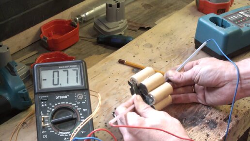 При тестировании АКБ шуруповерта необходимо, чтобы батарея была полностью заряжена. Наиболее точное измерение можно провести под нагрузкой, для этого к составным частям батареи поочередно будет подключаться лампочка (соответствующего вольтажа). Однако предварительно следует проверить зарядное устройство: включив блок в сеть, устанавливаем на мультиметре режим измерения постоянного тока, и щупы подключаются к "+" и "-" зарядного устройства соответственно. Если напряжение не соответствует, указанному на корпусе БП, то ЗУ меняют или ремонтируют...