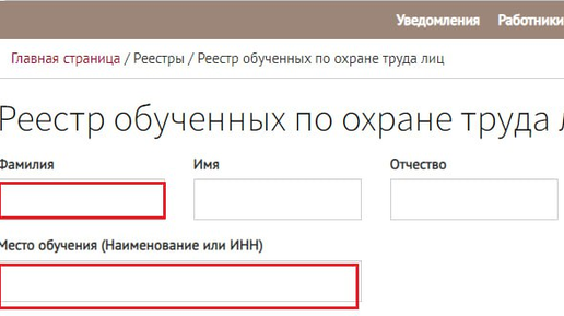 Для этого достаточно зайти в личный кабинет и ввести любую информацию о работнике в поля для ввода данных. Это может быть номер протокола, ФИО, профессия, СНИЛС или место обучения.
