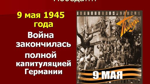 Здравствуйте, как мы все знаем приближается Великий день для России - празднование Дня Победы - 9 мая! Для нашей страны это особенный день, так как именно 9 мая, мы, а точнее наши деды и прадеды, бабушки и прабабушки, а также те, кого мы не знали своими усилиями выиграли войну у фашистской Германии. Не смотря на то, что в настоящее время появляется много тех, кто всячески пытается искажать историю, мы не забываем о том, что они тогда для нас сделали и продолжаем праздновать этот замечательный день...