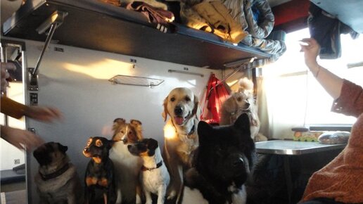 Многие владельцы, которые вынуждены, перемещаться по стране с животными пользуются поездом. В поезде в отличии от самолета не надо расставаться со своим любимцем, переживать и волноваться как же он там, в багажном отделении. Не боится ли шумов, один в клетке...да, да именно в клетку Ваш питомец должен будет помещен, что б лететь на самолете. Вот с поездом другая ситуация. Перевозя, своего собачонка крупного размера, Вам придется выкупить все купе. В плацкарт с собакой нельзя. Это хорошо если Вы едете с семьей в поезде, выкупили все купе и собака рядом...