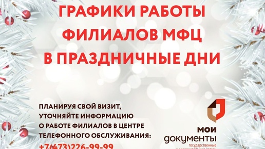 Из-за предстоящих новогодних праздников изменится график работы центров «Мои Документы». С 31 декабря по 8 января во всех филиалах региона будут выходные дни. - Прием граждан возобновится 9 января, - уточнил телеграм-канал «МФЦ Воронежская область». Вся информация о графике работы каждого...
