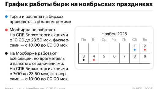 ❓Как будет работать Московская биржа в период ноябрьских праздников
