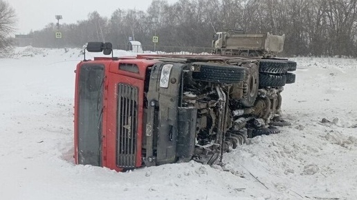 Самосвал МАЗ опрокинулся в Волжском районе Самарской области утром 20 февраля