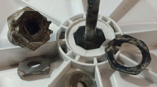 Перестала запускаться стиральная машина "Фея - 2". Есть шанс заглянуть внутрь и посмотреть её внутренности. Симптомы поломки: при включении таймера идёт гул мотора, но активатор не крутится. Кручение активатора рукой затруднительно. Начнём с самого активатора. Активатор состоит из следующих частей: Текстолитовая прокладка Точнее, прокладка состоит из пирога (4 шт) прокладок меньшей толщины. Но, замена на одну монолитную ни чего не испортит. Внутренний диаметр прокладки по диаметру штока крыльчатки...