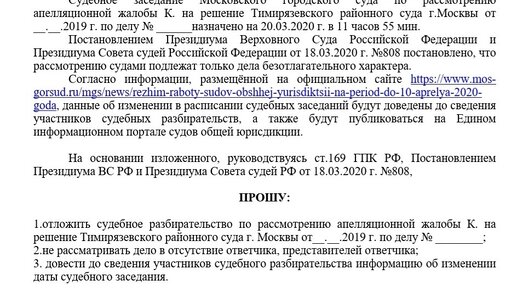 Эми Мария Гольмакова5 лет назадПодписатьсяКак работают суды в период карантина?Уважаемые коллеги, юристы, адвокаты. Спешу прокомментировать последние изменения в работе судов. Как нам всем известно, 18 марта 2020 г. Было принято совместное постановление Президиума ВС РФ, президиума...