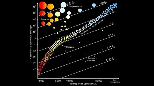 Собственно говоря, диаграмма Герцшпрунга-Рассела или сокращённо диаграмма Г-Р имеет важное значение в теории звёздной эволюции. Где цвет указывает на звёздную величину или на спектр (светимость).