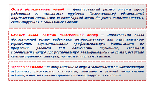 Что такое оклад по Трудовому кодексу Термин «оклад», а также сопутствующие ему определения «базовый оклад», «должностной оклад» и «заработная плата» расшифрованы в ст. 129 ТК РФ. Чтобы понять, как рассчитать размер зарплаты из оклада, и применить подходящую формулу, разберемся с этими терминами: На основании приведенных в ТК РФ определений оклад представляет собой минимальную фиксированную денежную сумму, которую работодатель обязан заплатить сотруднику за каждый отработанный месяц при условии выполнения возложенных на него должностных обязанностей...