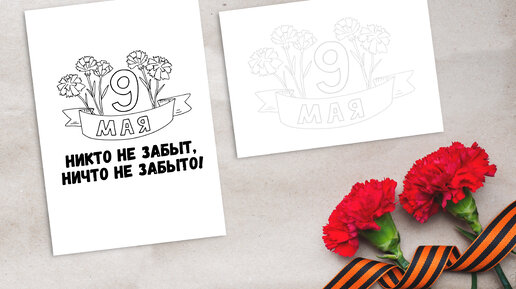 Открытки-раскраски 9 мая День Победы скачать бесплатно