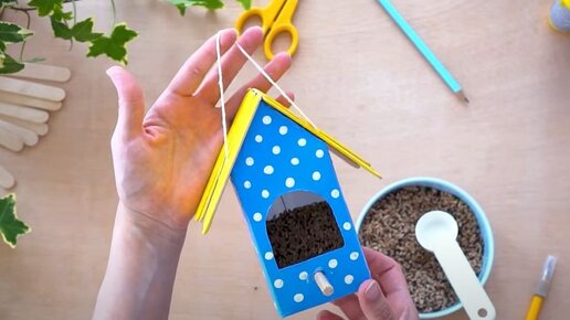 Сделать кормушку для птиц согласится с радостью любой малыш. Потому что очень приятно смастерить красивый домик, а потом понаблюдать за прилетающими пташками.