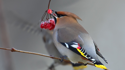 Зимой в посёлках и небольших городах средней полосы нашей страны появляются сравнительно небольшие (со скворца размером), но плотно сбитые и весьма примечательные птицы. Их оперение мягкое шелковистое, окраска преимущественно серо-розовая, но имеются очень заметные чёрные, белые, красные и жёлтые вставки. Голову птаха украшает небольшой хохолок, которым его хозяин управляет, приподнимая и складывая. Самки практически не отличаются от самцов, разве что их разноцветные вставки на оперении чуть-чуть бледнее...