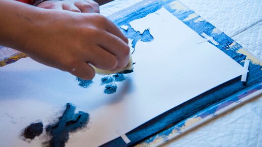 Рисунок на 9 мая при помощи губки и зубной щетки