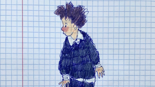 Название рисунка может показаться странным, но оно просто описывает материалы, которыми был нарисован мальчик. 👦🏻 Он нарисован ручкой (контуры и штриховка) и раскрашен цветными карандашами. Очень интересный результат получается при такой работе...