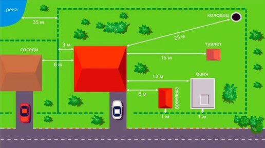 Как расположить все постройки на участке по правилам. Минимальный размер участка для строительства.
