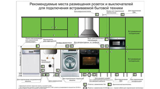 Как расположить розетки на кухне?