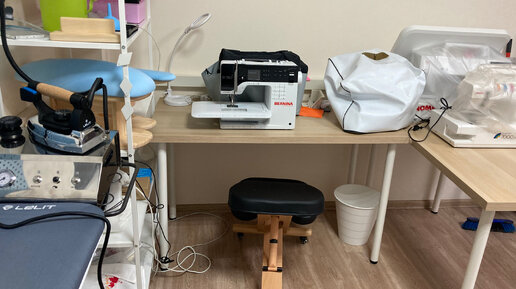 У меня 8 вязальных машин, и все они стоят... В середине лета я сняла небольшое помещение, в котором разместила запасы пряжи, два стеллажа, все вязальные машины (только одну оставила дома). Поставила небольшой диван и столик из IKEA - сначала думала, что пригодится для посетителей, но чаще использую сама - на нем удобно что-то распустить, сметать или просто попить кофе, купленное на ближайшей заправке.