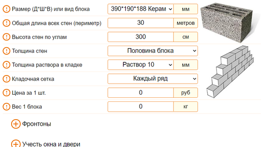 Как рассчитать количество блоков на дом?