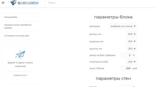 Обзор онлайн калькулятора расчета пеноблоков