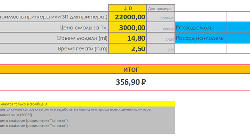 Расчёт стоимости 3D печати