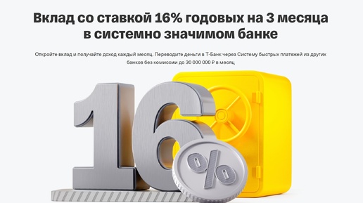 Допустим, вы открыли рублёвый вклад на 3 месяца, минимальной суммой 50 000 ₽, под максимальную ставку 16 % годовых. Проценты начисляются ежемесячно и капитализируются. С помощью калькулятора на сайте Т-Банка можно увидеть итоговую сумму, учитывая начисление процентов. Если вам нужен более долгий срок — 12, 18 или 24 месяца — ставка, вероятнее всего, будет ниже, но общая доходность всё равно может быть привлекательной, особенно если вы не планируете снимать деньги. 1. Можно ли открыть вклад без визита в офис? Да...