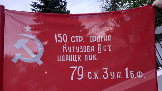 По внешнему виду Знамя Победы - изготовлено в военно-полевых условиях импровизированный флаг СССР. Представляющий собой прямоугольное красное полотно размером 82 см на 188 см. Штурмовой флаг 150-й ордена Кутузова II степени Идрицкой стрелковой дивизии 79-го стрелкового...