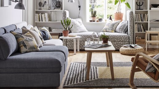 Гостиные в типовых квартирах обычно прямоугольные, днем их используют для работы и отдыха, вечером – для приема гостей, а ночью – для сна. Разбираемся, как совместить все функции. 1. Зонируйте пространство Самая частая ошибка – расставить мебель вдоль длинных стен. И без того вытянутая комната становится похожей на вагон. Вместо этого зонируйте пространство, например, обустройте зону приема гостей у окна, а столовую зону, рабочий кабинет или систему хранения – ближе к входу. 2. Выбирайте...