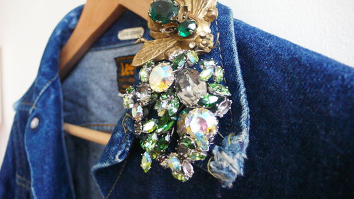У каждой девушки в гардеробе найдется она — джинсовая куртка. База на лето. Если такой полезный предмет одежды залежался у вас в шкафу, то пришло время это исправить. Как? Надо ее украсить! Одежда из денима – один из главных трендов прямо сейчас. Модницы России и всего мира даже создают образы, полностью состоящие из джинсовых вещей (их называют total denim). Сегодня мы расскажем как можно сделать свою джинсовую куртку еще более модной и интересной! Один из самых простых способов сделать из своей старой джинсовой куртки вещь “с изюминкой” – добавить массивную брошь...