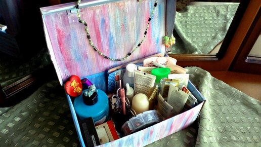 Я нашла оригинальный способ, как держать косметику под рукой и при этом тратить минимум времени на идеальный порядок. Чтобы повторить лайфхак вам понадобится: Как я сделала порядок на туалетном столике: Как этот лайфхак мне помогает: Первоначально я просто под настроение хаотично скинула со стола все пузырьки в первую попавшуюся коробку. Позже усовершенствовала и украсила своё изобретение. Согласитесь, что один большой предмет проще переставить, чем десятки мелких...