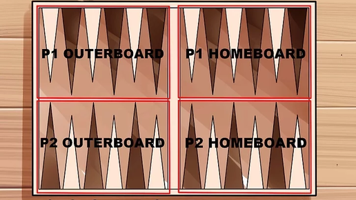 Ознакомьтесь с игровой доской. В нарды играют на специальной доске, состоящей из 24 узких треугольников, также называемых пунктами. Треугольники чередуются по цвету и сгруппированы в четыре квадранта (четверти) по 6 треугольников каждый. Квадранты делятся на 4 вида: дом игрока, двор игрока, дом противника и двор противника. На пересечении квадрантов, посередине доски находится бар.[1]