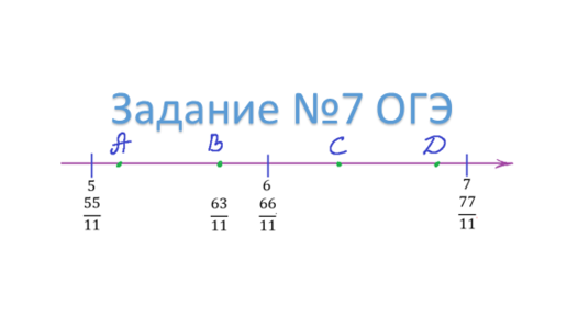 В этой статье вы найдете простой способ решения седьмого задания ОГЭ по математике. Задание. На координатной прямой отмечены точки A, B, C, и D. Одна из них соответствует данному числу. Какая это точка? Предлагаю два способа решения этого типа задания Способ №1. Дробь 63/11 переведем в смешанное число и определим в каком интервале находится это число. Мы определили, что наше число находится в интервале от 5 до 6. Теперь сравним дробь 8/11 с половиной, т.е. определим это число больше 1/2 или меньше...