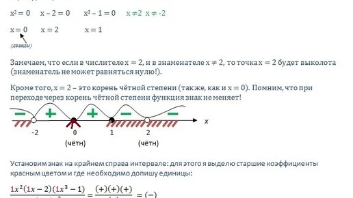 В одной из недавних моих статей был рассказан классический метод интервалов. Но я обещала поделиться с вами лайфхаками! Итак, оказывается для определения знака на интервалах не обязательно проводить довольно рутинные вычисения. Можно поступить проще. 1. Определяем знак на крайнем справа интервале (помните, я говорила, что эта привычка нам пригодится). Сделать это можно, определив знаки каждого коэффициента, стоящего перед неизвестным, которое находится в самой большой степени (знак старшего коэффициента) в каждом множителе...