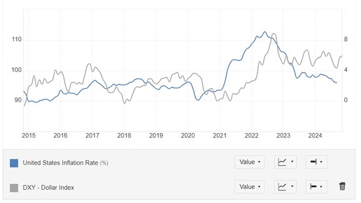 После публикации вчерашней статьи о том, что в результате победы Трампа на выборах начал резко расти курс доллара к мировым валютам, где я объяснил это потенциальным разгоном инфляции в США вследствие его планируемой политики, поступило много непонимающих комментариев: если доллар начнет обесцениваться инфляцией, почему его курс к другим валютам должен расти? Что же, давайте проясню этот момент подробнее. Для начала посмотрите на график, где я сравниваю инфляцию в США и индекс доллара, показывающий его отношение к корзине из других мировых резервных валют, за последние 5 лет...