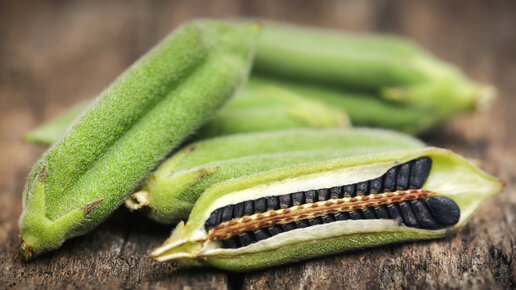 Кунжут на булочках видел каждый, а вот кунжутное дерево со стручками далеко не все. Трехметровое деревце Кунжут, конечно, это не дерево, а травянистое растение. Но вырасти эта травка может как настоящее дерево: до 3-х метров! Кунжут любит тепло, поэтому он растет в Индии, Африке и других жарких местах планеты. Недавно растение появилось и в Краснодарском крае. Хлопающие стручки По всему кунжутному стеблю рассыпаны вот такие стручки. Именно в них и находятся те самые семечки, которые всем знакомы...