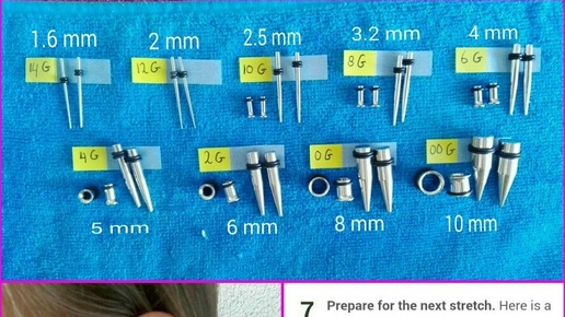 Растяжка — один из самых популярных и простых способов насладиться исцеленным пирсингом. Однако информация по этому вопросу часто неоднозначна. Любой пирсинг можно увеличить до большего размера. Скорость растяжения зависит от места на теле и эластичности кожи. Размеры украшений обозначаются в калибрах, миллиметрах и дюймах. Калибры выражаются четными числами: чем выше число, тем меньше размер украшения (например, 8G следует за 10G). После размера 00G большинство украшений измеряются в дюймах или миллиметрах (следующий размер после 00G - 7/16")...