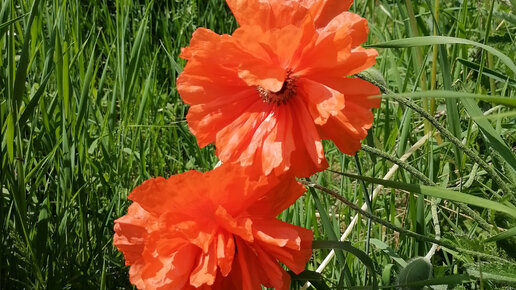 Соседний участок новые хозяева пока не облагородили и там опять зацвели маки многолетние, которые остались от старых хозяев. Яркими оранжевыми пятнами выделяются они среди зелени, как на диком поле и притягивают взгляд. И так они растут последние 2 года совсем без ухода, полива и подкормок. Мне сразу вспомнились мои многолетние маки, крупноцветковые, алые с большим фиолетово-черным центром, окруженным множеством тычинок. Они у меня росли ещё 5-6 лет назад, но заболели и в итоге однажды весной просто не взошли...
