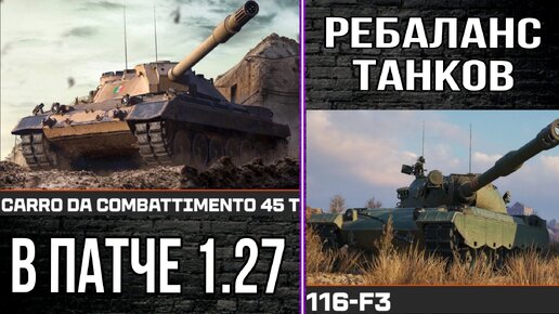 Привет танкисты! В этой статье я познокомлю вас с очередными изменениями в технике, которые произойдут в обновлении 1.27. Уверен на сто процентов , что не только эти танки подвергнуться ребалансу. Но пока это вся информация. Далее ближе к выходу обновы думаю будет ещё интереснее. Какие же танки разрабы🤡 решили немного подправить в базовых ТТХ. Эти правки коснулись танков из веток прокачки,а также акционных десяток. Ребаланс танков 10 лвл можно отнести конечно же больше к апу нежели к нерфу. Посудите сами: ⭕ СТ Х уровня Carro Combattimento 45t : По мне так это безусловно ап...