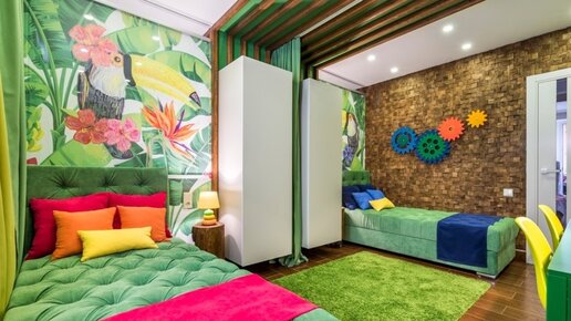 Сначала нужно определиться с зонами: сна, отдыха, учебы, спорта или игр, возможно личный уголок. Стоит отметить, что некоторые зоны могут быть общими. Речь идет об игровой и учебной (если дети примерно одного возраста). Если позволяет площадь, то лучше установить две кровати и два письменных стола. Необходимо для каждого ребенка выбрать свое место хранения игрушек. Можно повесить постеры любимых героев в той зоне, где установлена кровать. Отличным вариантом для небольших детских является установка двухъярусной кровати...