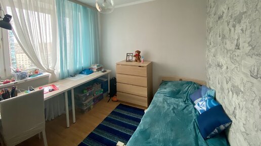 Год назад мы переехали в трёхкомнатную служебную квартиру. И встал вопрос о том как же сделать так, чтобы всем было комфортно. Дети разнополые, старшая на тот момент в 6 классе, младший в подготовительной группе, готовился стать школьником. Мы сразу отдали детям самую большую комнату(18м). Выделить им две комнаты из трёх был не вариант, потому что от спальни с кроватью мы отказываться никак не хотели, чтобы каждый день диван раскладывать, и гостиная нам тоже нужна. Стали думать, как быть, просчитывать варианты...