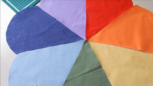 Каждый Охотник Желает Знать, Где Сидит Фазан Красный, Оранжевый, Желтый, Зелёный, Голубой, Синий, Фиолетовый. Все знают эту фразу или считалочку для запоминания последовательности цветов радуги. А я сшила красивую подушку для своих внучек, она в форме цветка и 7 одинаковых лепестков и конечно разного цвета. Я написала в интернете в поиске как разделить круг на 7 частей, напечатала и вырезала одну часть, приклеила на лист бумаги и провела полоски , увеличила на размер какой мне нужен. Длина одной стороны 23 см, а ширина вверху 20 см Ткани у меня только хлопковые, это поплин и перкаль...