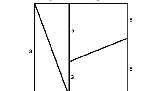 Здравствуйте, уважаемые любители математики! Спасибо, что читаете мой канал и подписываетесь! Я этому очень рад! Сегодня я хочу в очередной раз предложить Вам интересную задачку на смекалку. Берётся квадрат со стороной восемь (любых условных единиц). Далее он разрезается на четыре части так, как это показано на рисунке ниже: Затем из этих четырёх частей складывается прямоугольник со сторонами 13х5 (таких же условных единиц). Делается это так, как показано на рисунке ниже: Теперь вычисляются площади фигур...