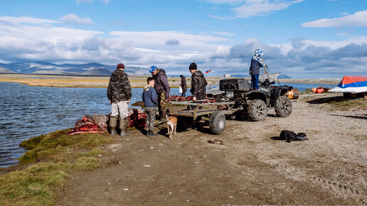 Кита определяют по запаху. И по масляному пятну, которое он оставляет на поверхности воды. Если запах сильный и резкий, это значит, что кит съел что-то не то и мясо будет невкусным. Слишком большие киты тоже не особо интересуют охотников: сложно добыть, сложно тащить, сложно разделывать. Поэтому китобои выбирают средних особей серого кита. Добывают по чёткой квоте. Сейчас - около 150 китов в год на всю Чукотку. Например, в посёлке Лаврентия, где живёт 1200 человек, квота - 14 китов в год. И тут...
